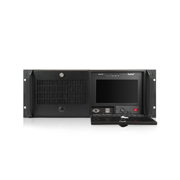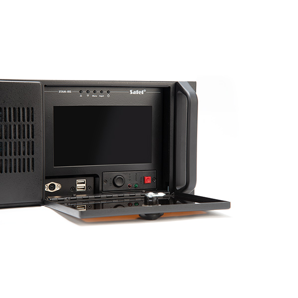 STAM-IRS is a STAM-2 monitoring station system, designed to work as the station's server. It supports up to 17 event receivers: 14 telephone or Ethernet receiver cards installed in PCI slots and 3 GSM modules connected to COM/USB ports. STAM-IRS has a built-in PC micro-server based on the energy-saving ASUS PRIME N100 platform and is provided with two fast long-life NVMe and SSD drives. The device comes with a small-size 5" LCD display for local management of the server. If required, it can also be connected to any monitor provided with a DisplayPort connector.