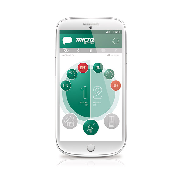 MICRA CONTROL to bardzo intuicyjna aplikacja mobilna służąca do zdalnej obsługi systemu bazującego na module MICRA. Jest dostępna dla urządzeń mobilnych z systemem Google Android.
